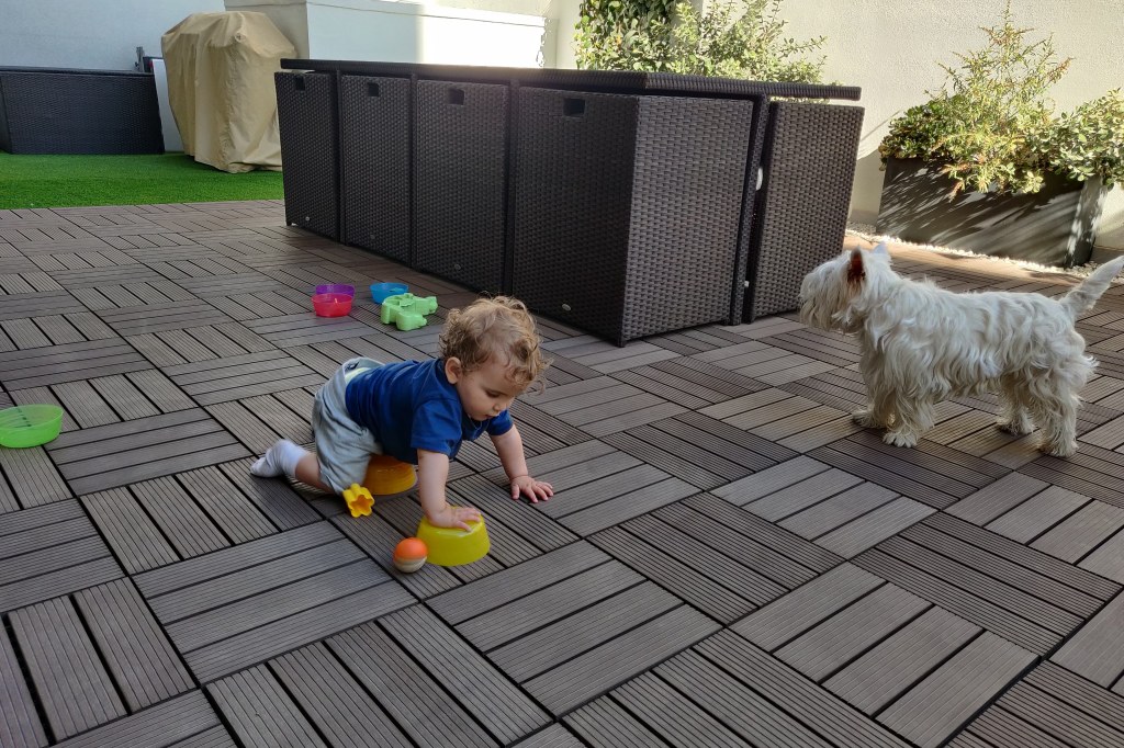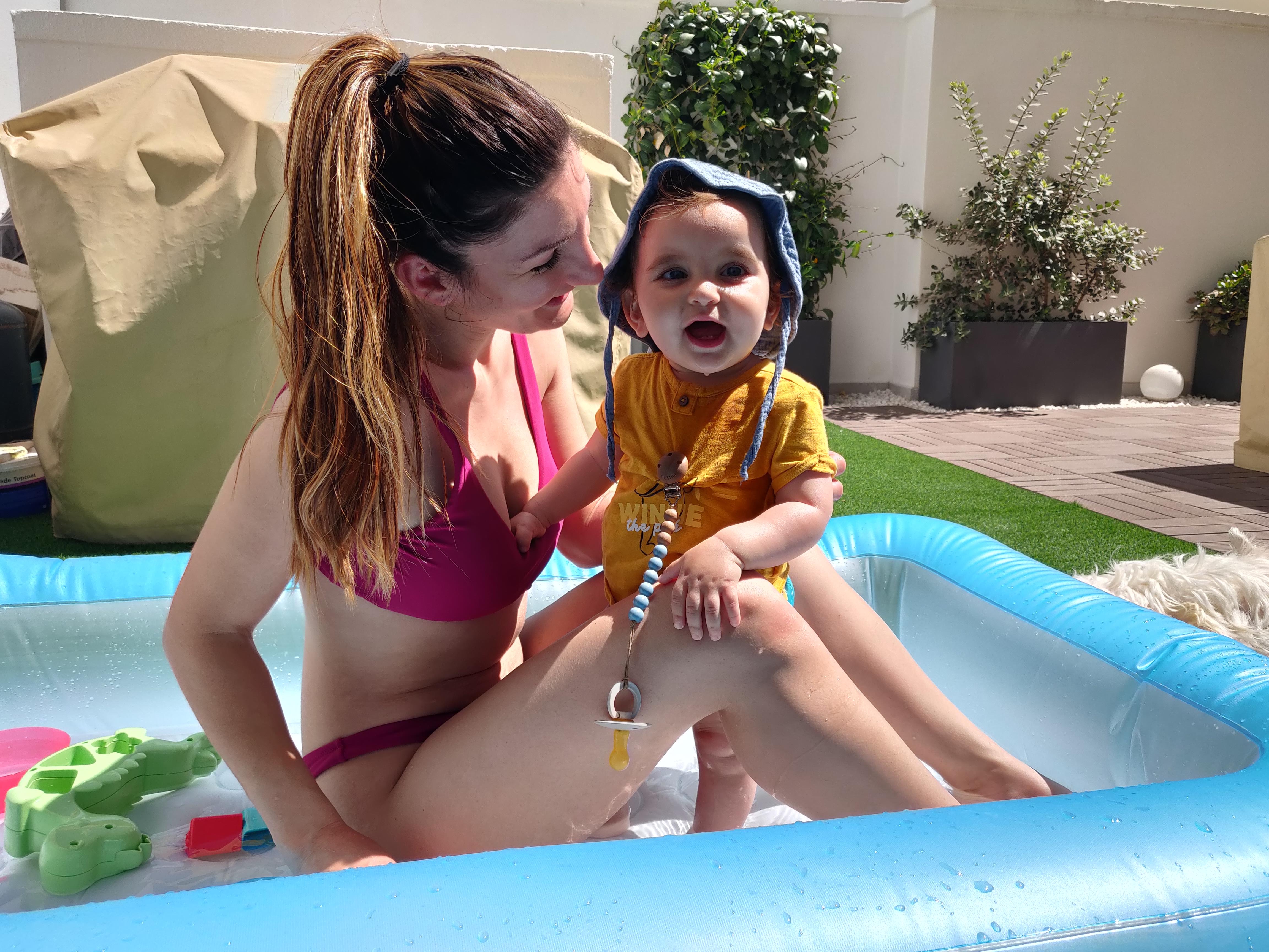 Before summer started, we bought a paddling pool for our terrace from Megastore for about €18 and it is just perfect – I get in with him and we have a great time just splashing around. If you have the space for it (you don’t need much), I couldn’t recommend this more. I’ve often seen the advice that if your child is fussing, you should put them in water or take them outside – and this hits two birds with one stone and works absolute wonders.