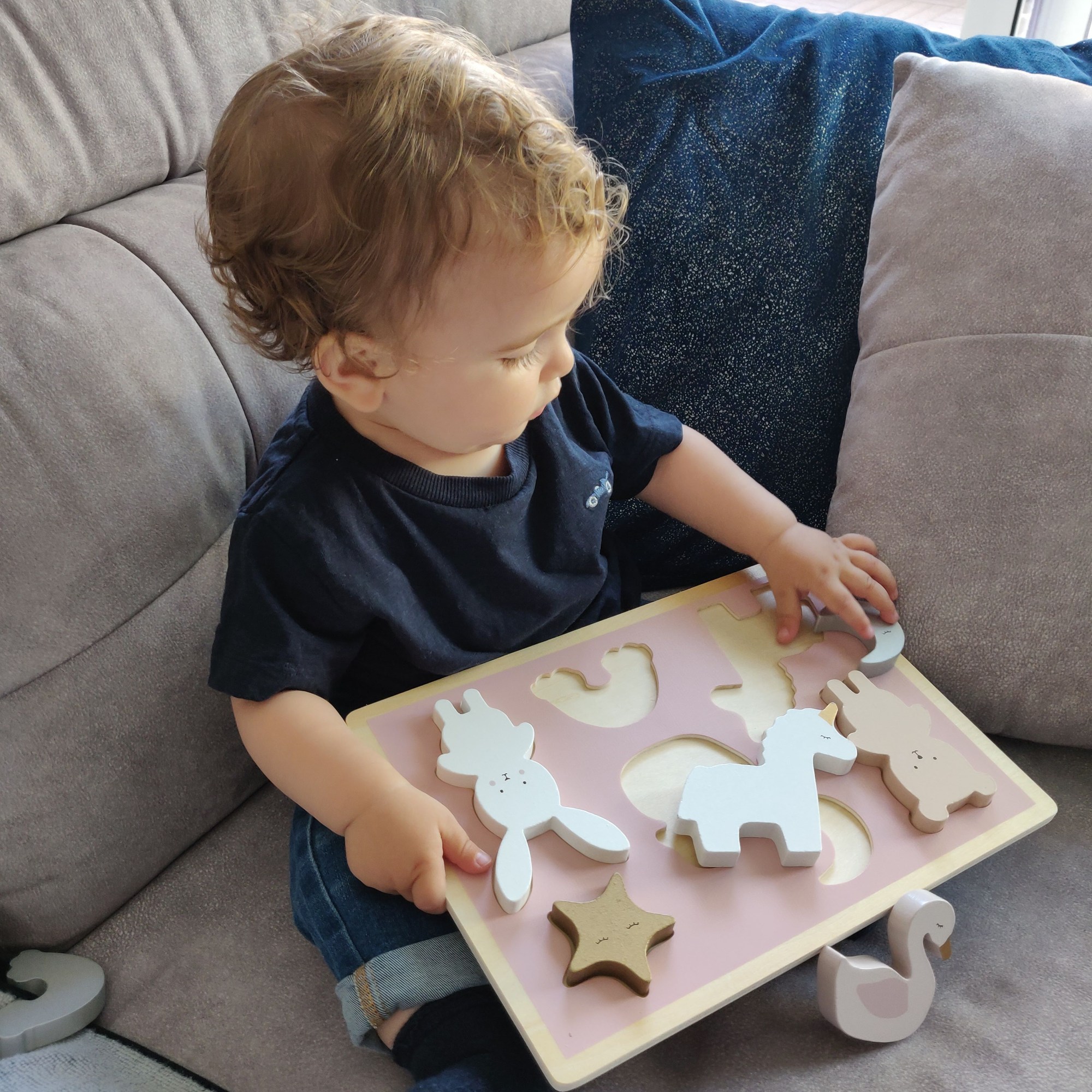 While puzzles are not necessarily age appropriate for babies, my son has always had a great time playing with the different pieces and exploring them, and I’ve also used them as vocabulary opportunities; for example animal puzzles, where I tell him about animals he otherwise wouldn’t be seeing anywhere else. Once they’re old enough to know how to play with them, that’s a great way to keep them entertained and have some fun together – and you can find some lovely wooden puzzles from stationeries and baby shops for under €20!